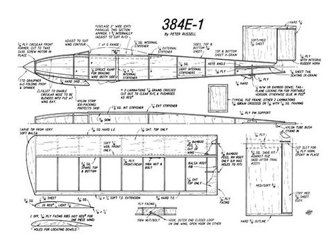 384E‑1 Electric 32 in Wingspan RC Plane Model Printed RC Airplane Plans